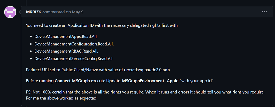 IntuneBackupAndRestore project and found this helpful reply to someone experiencing the same problem as me: